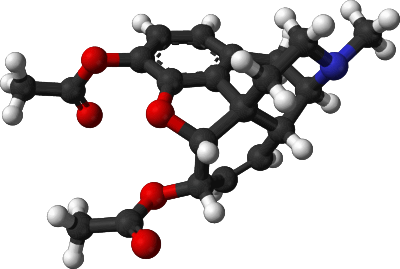Heroin molecule from a public domain image on Wikipedia Commons.