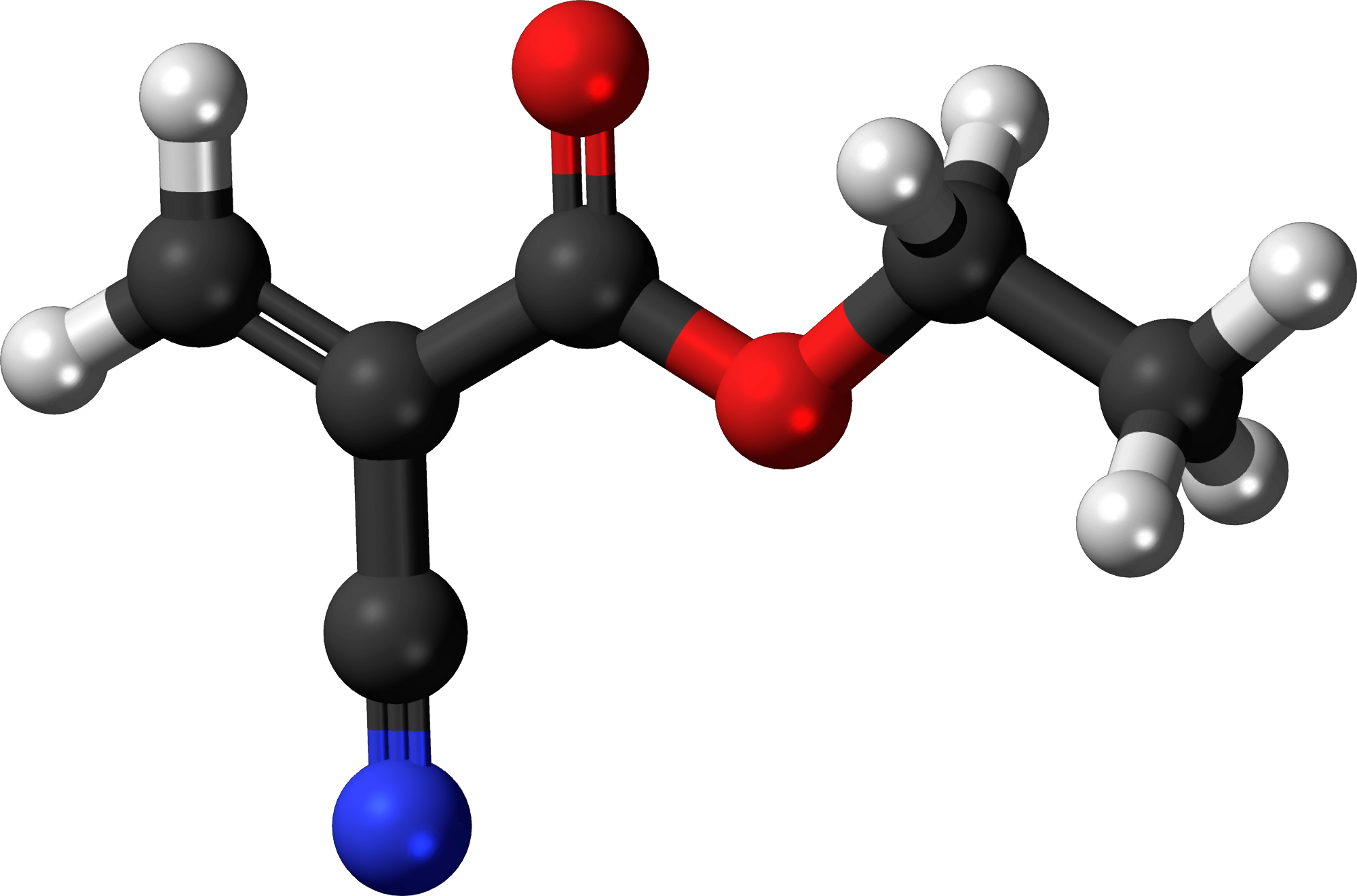 Ethyl cyanoacrylate (superglue) molecule from a public domain image on Wikipedia Commons.