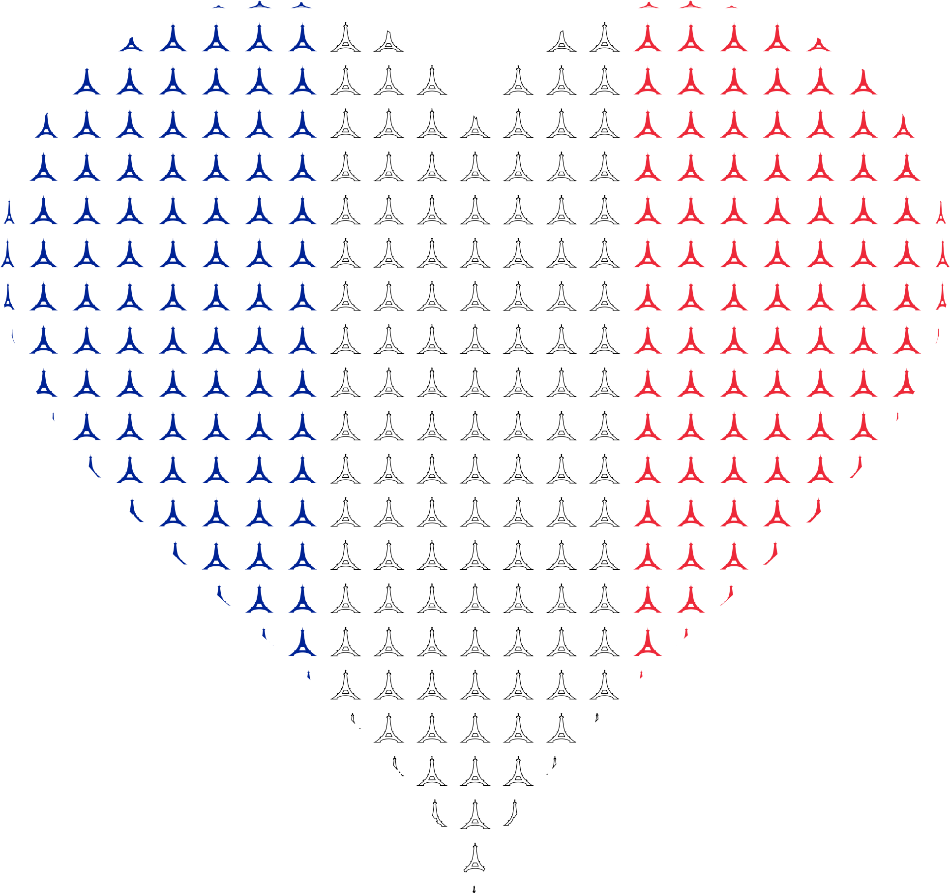 Eiffel Tower shapes colored as the flag of France in a heart shape.
