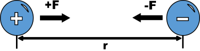Physic diagram: like charges attract at distance r