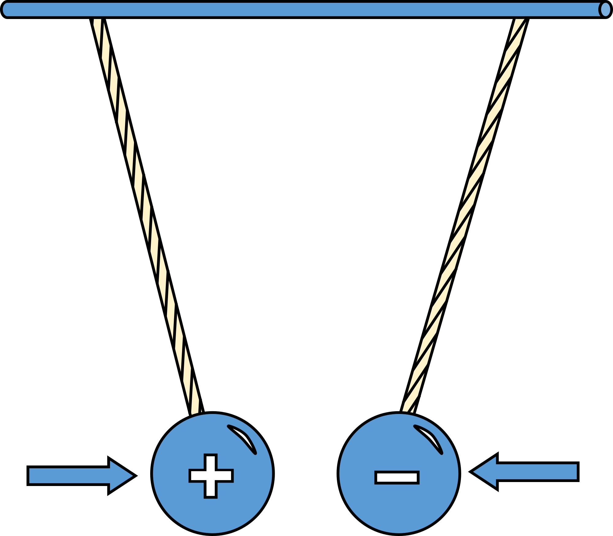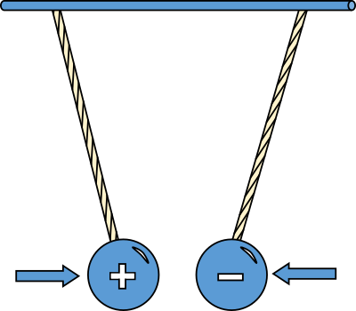 Physic diagram: oppositely charged pith balls attract