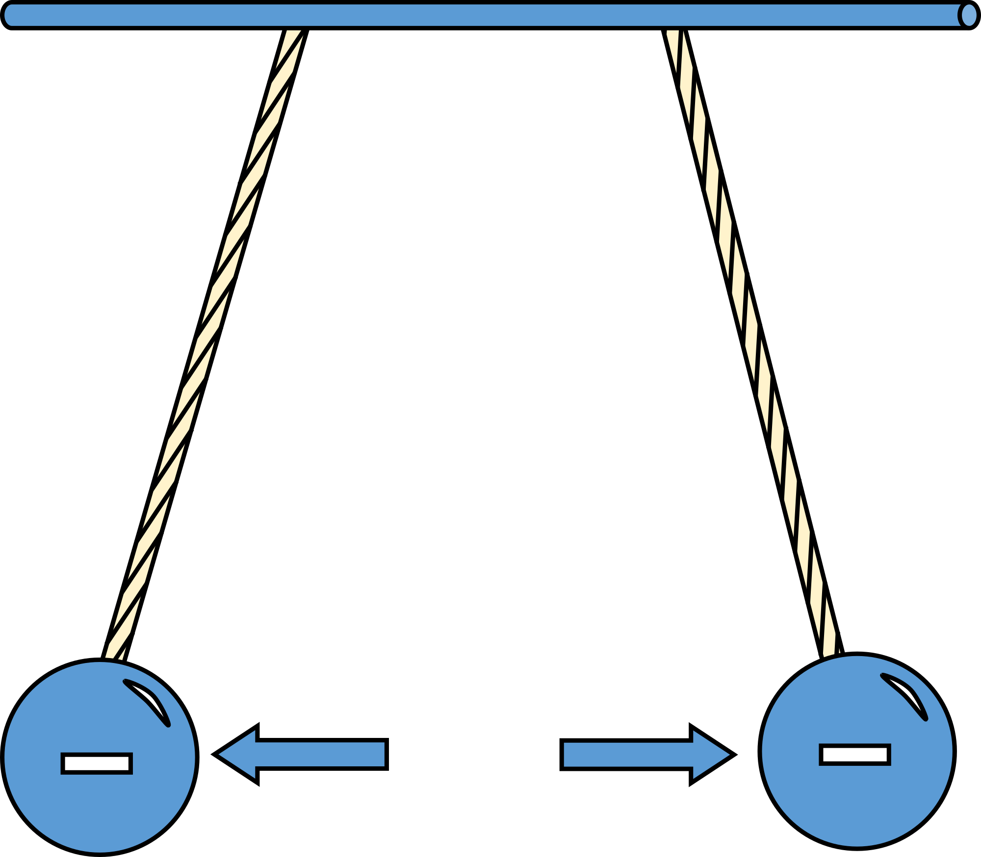 Physic diagram: oppositely charged pith balls attract
