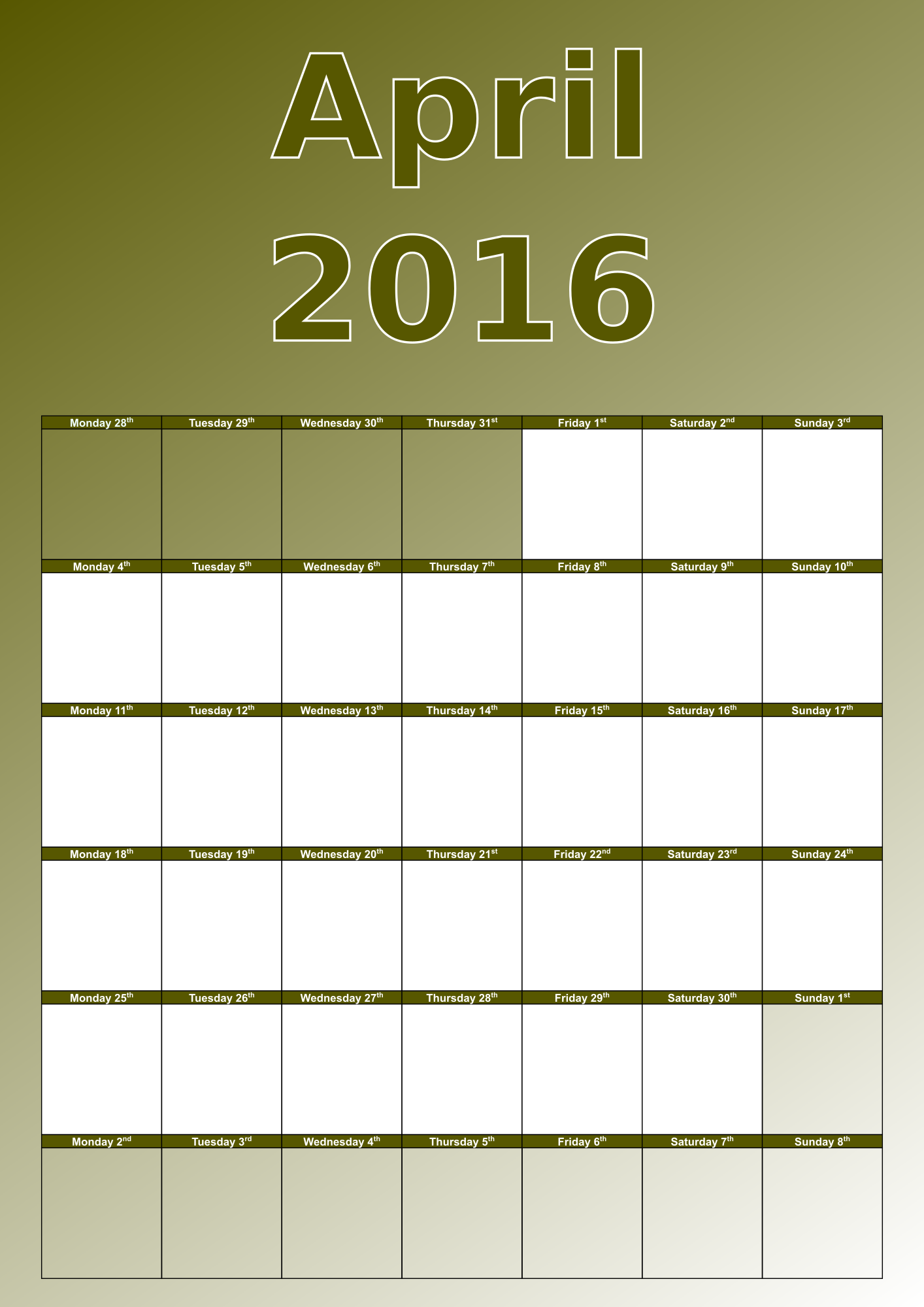 A simply styled monthly calendar.