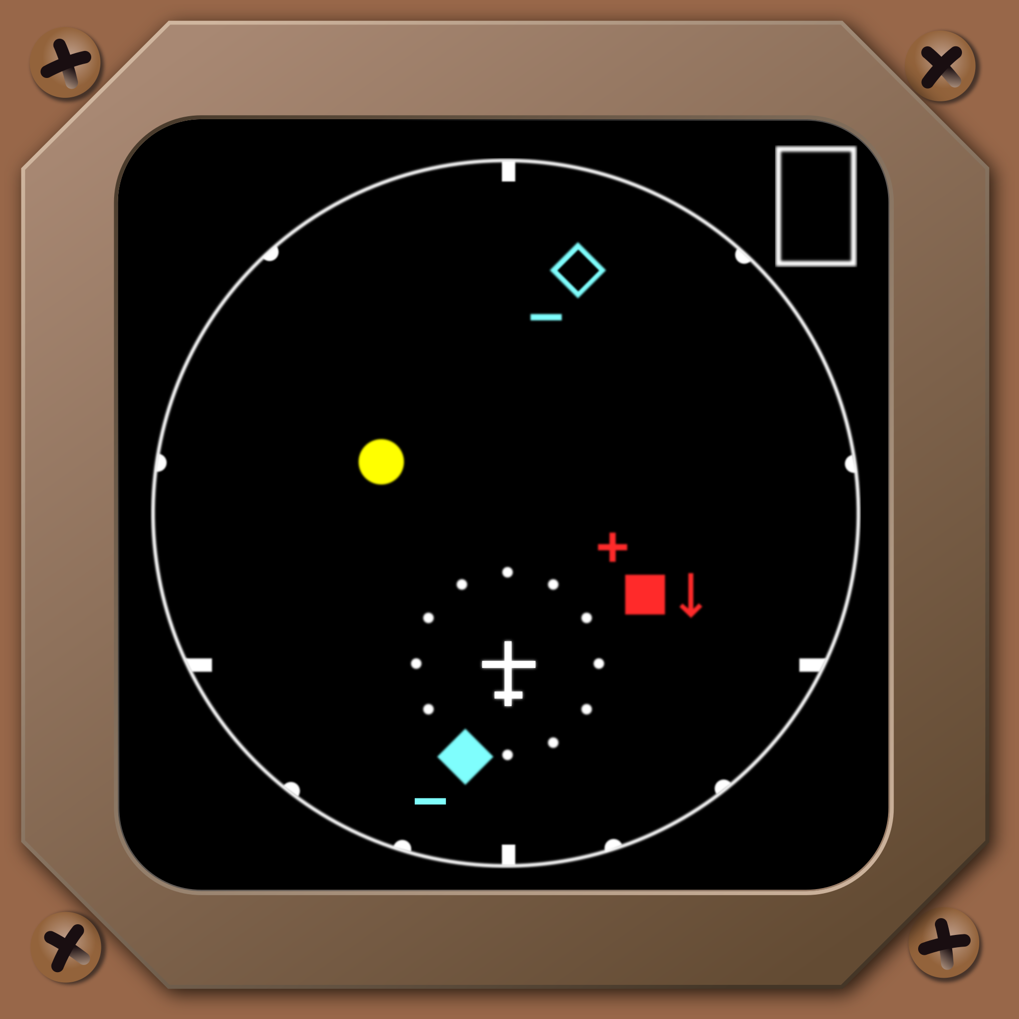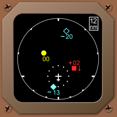 A realistic looking generic Traffic Collision Avoidance System (TCAS) traffic display like those used on older aircraft like the Boeing 757 and 767.