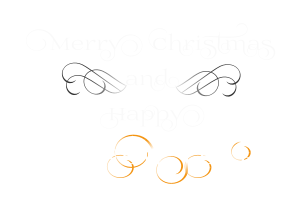 Merry Christmas and Happy New Year ornamental text with fontPrida02Calt and VECfont PridaS4.