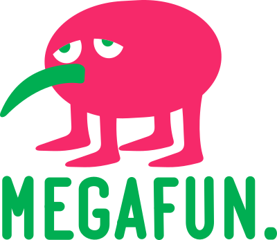 A funny semi depressed pink monster saying he is having "MEGAFUN."
