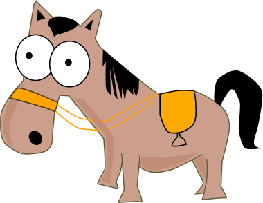Cute horse with big eyes and saddle