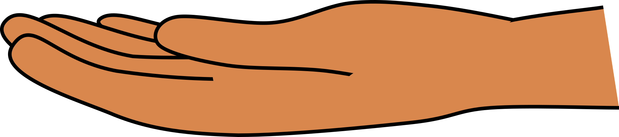 A left hand outstretched, palm up (supine).