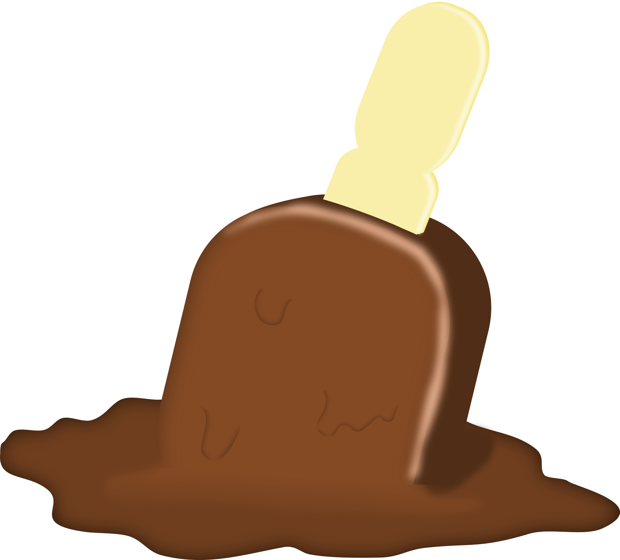 A chocolate popsicle dropped on the ground, melting.