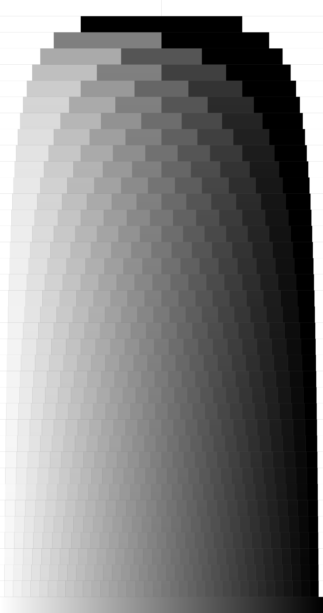 One gradient transformed to fill a grid of separate seemingly flat coloured rectangles.