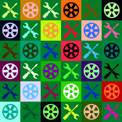 A chequerboard-style pattern with an engineering theme. The spanner and screwdriver combo is borrowed from one posted by Sev. This is the original version, but with random colours.