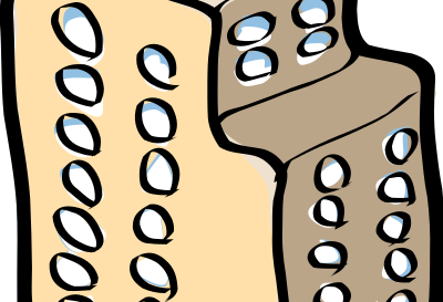 An hand drawn building with a satellite dish on the roof.