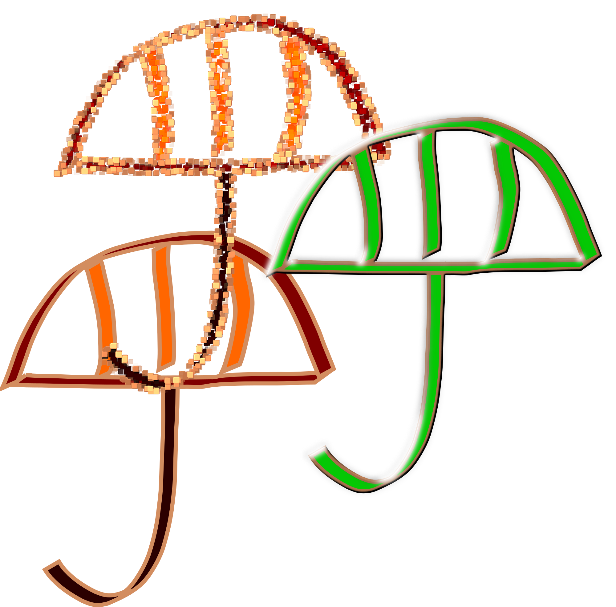 3 umbrellas done with various effects and calligraphy tools.