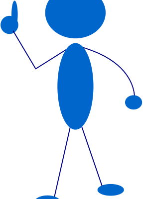 A blue stick man pointing up.