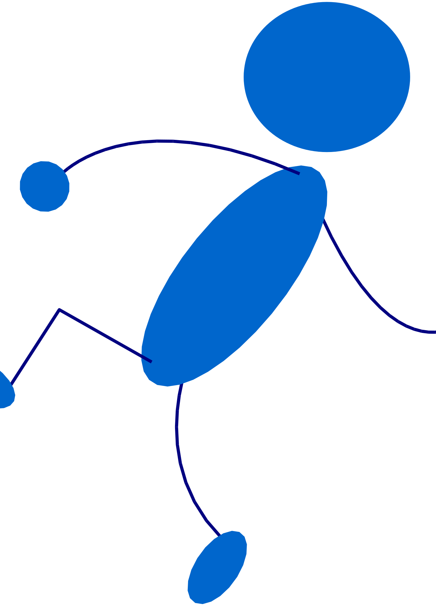 A blue stick man throwing.
