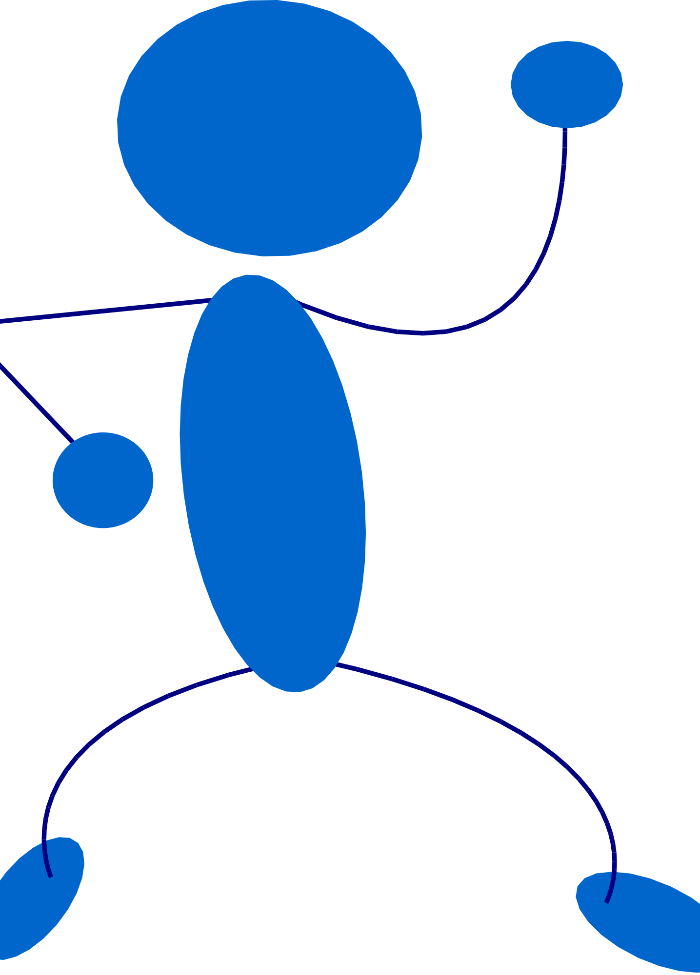 A blue stick man dancing.