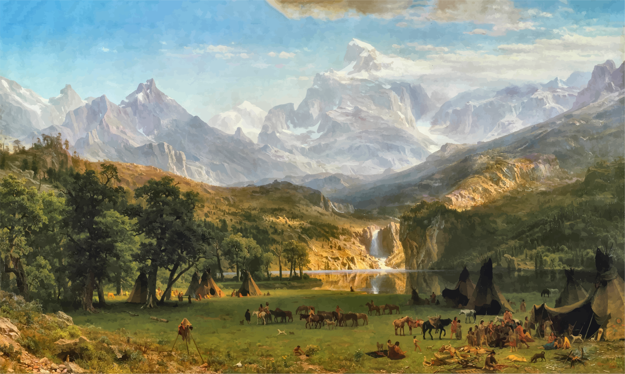 - Albert Bierstadt America Art Horses Indians Lander's Peak Landscape Native Americans Painting Rocky Mountains Rural Teepees Tents USA United States Vintage Wilderness remix+237152