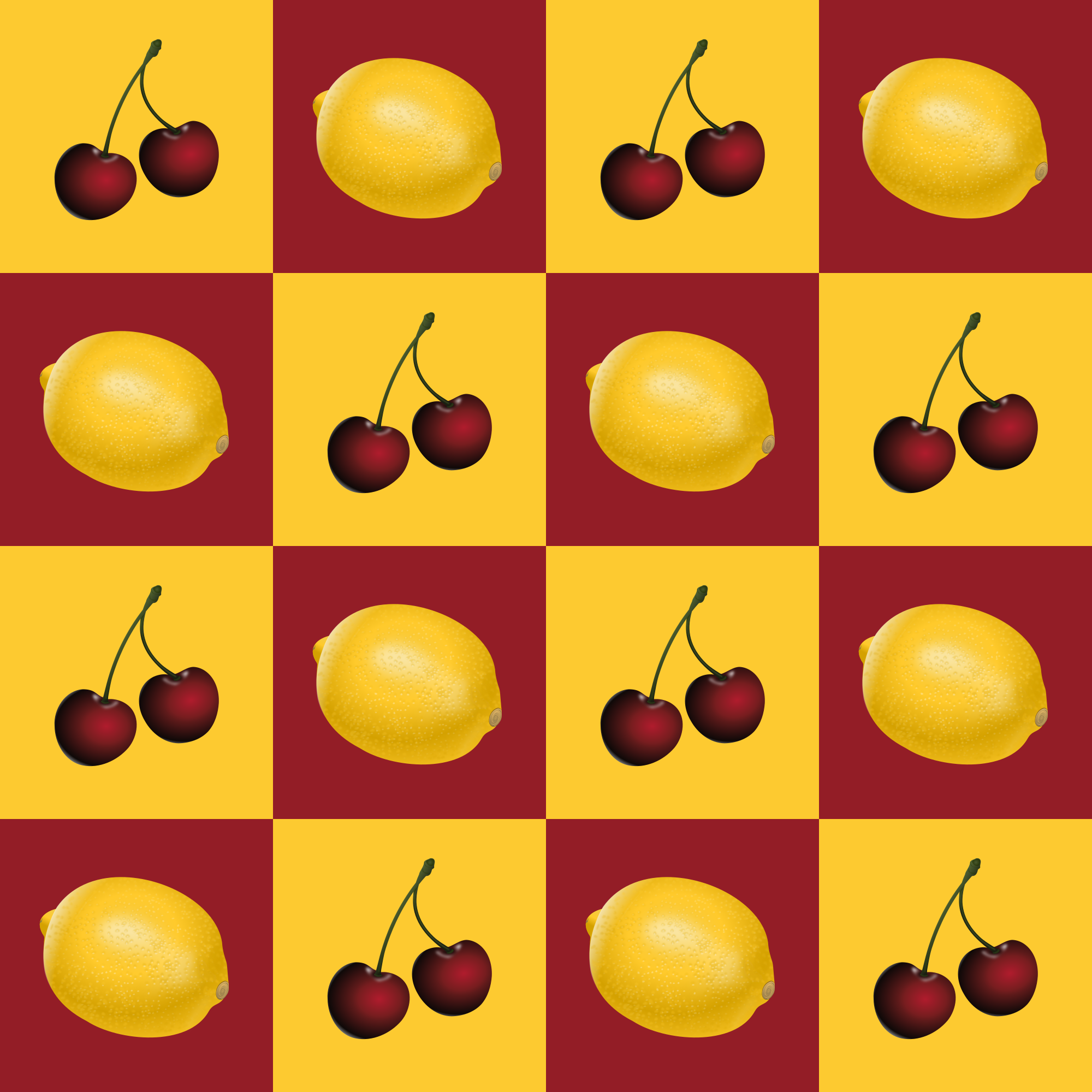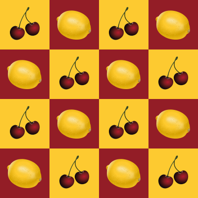 A chequerboard pattern with a fruit theme. The fruits are from postings by Keistutis.