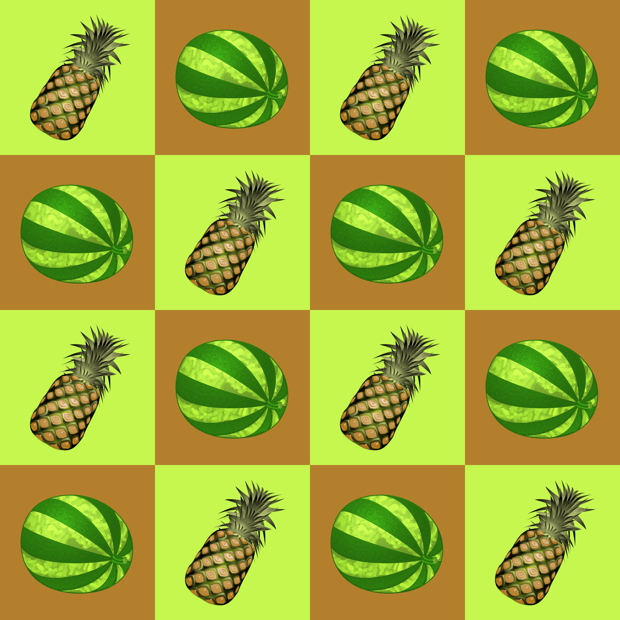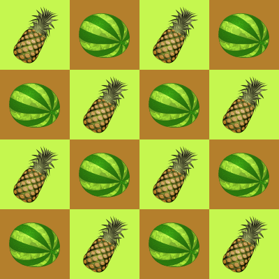 A chequerboard pattern with a fruit theme. The fruits are from postings by Keistutis.
