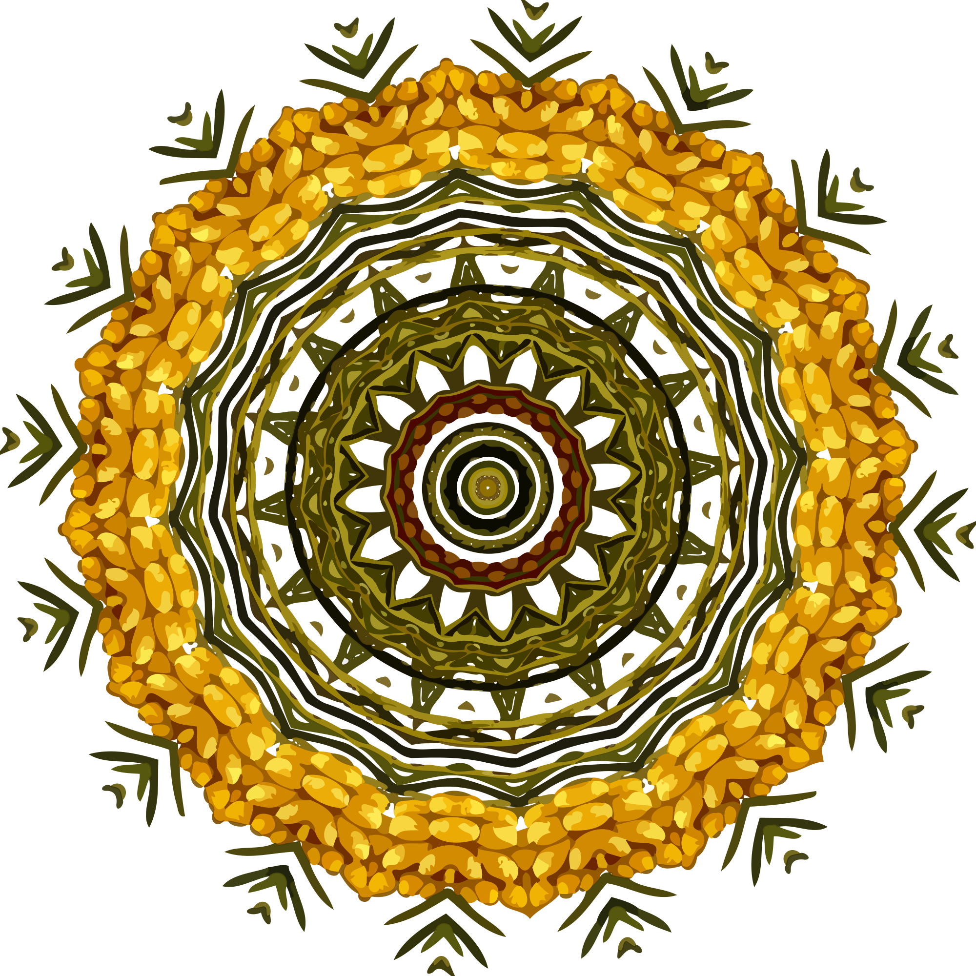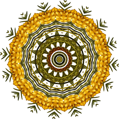 Design with rotational symmetry formed from elements of a plant drawing.