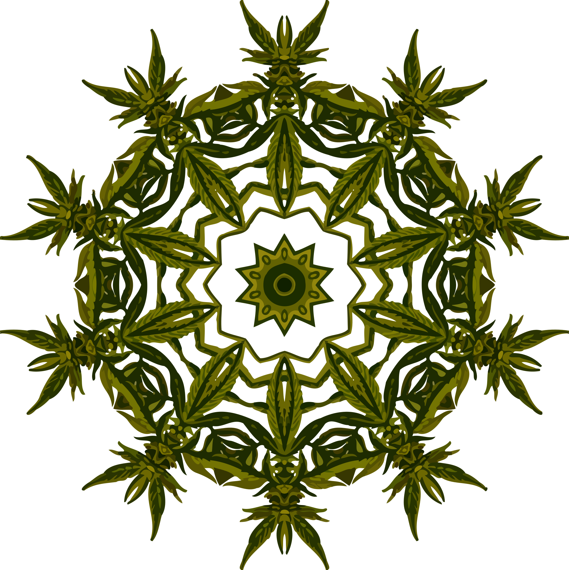 Design with rotational symmetry formed from elements of a plant drawing.