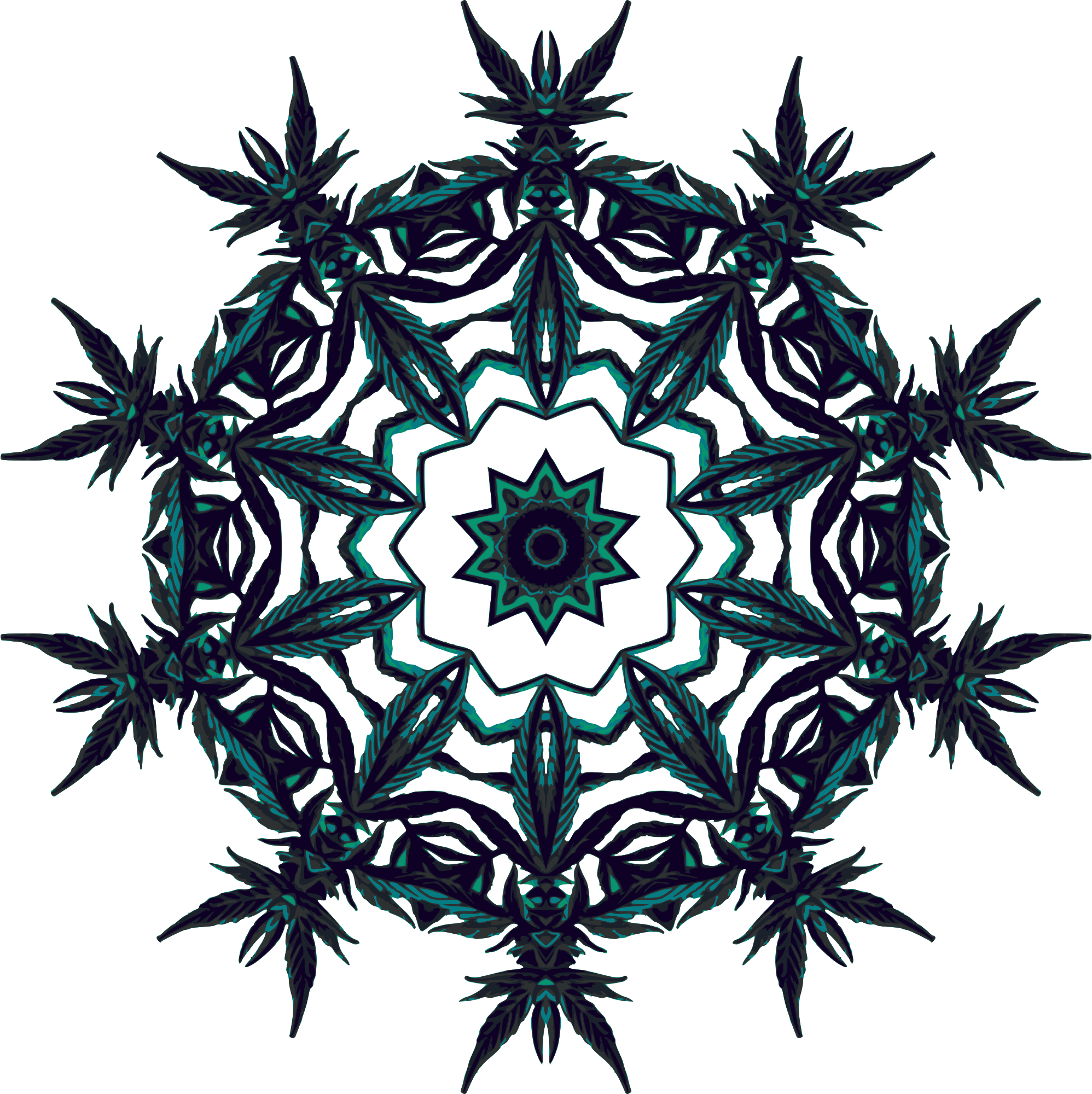 Design with rotational symmetry formed from elements of a plant drawing.