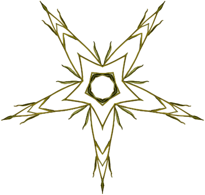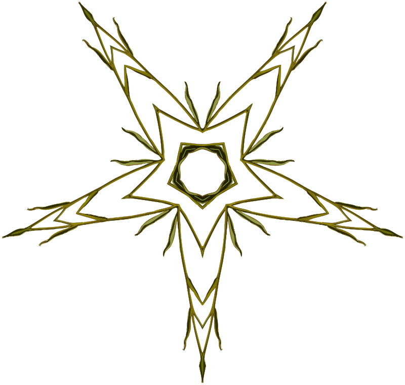 Design with rotational symmetry formed from elements of a plant drawing.