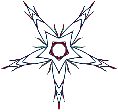 Design with rotational symmetry formed from elements of a plant drawing.