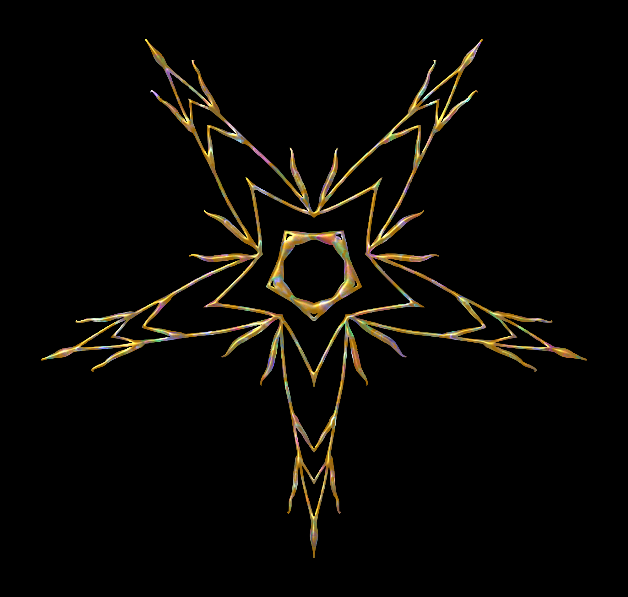 Design with rotational symmetry formed from elements of a plant drawing.