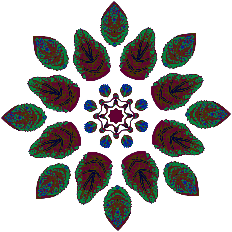 Design with rotational symmetry formed from elements of a plant drawing.