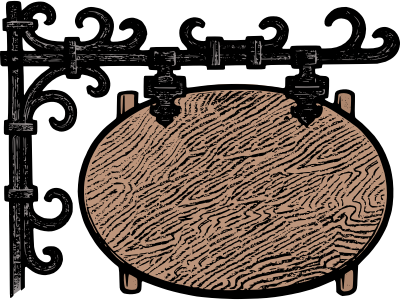This is a classic "tavern style" sign that could be used in an RPG or for some sort of theme like that. Use a "gothic" font and put on any name you want, go for it.
