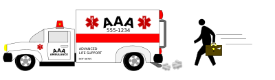 Remix of the pedestrian figure as a lawyer chasing an ambulance to illustrate the word "pettifogger." Thanks to user kesigomu for the ambulance logo
