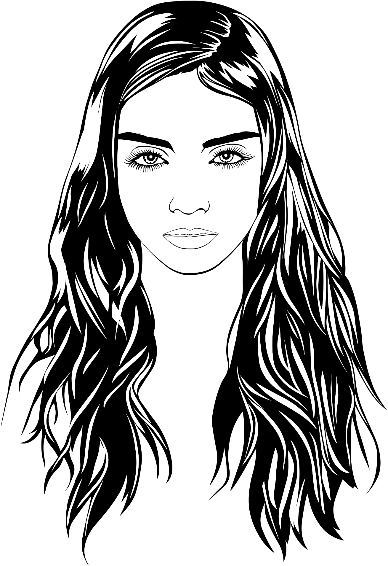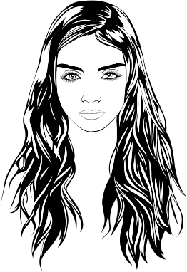 Cartoonie Female Girl Line Art Long Hair Portrait Semi-Realistic People Silhouette Woman