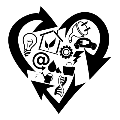 An IoT collage of various icons in a recycled heart.