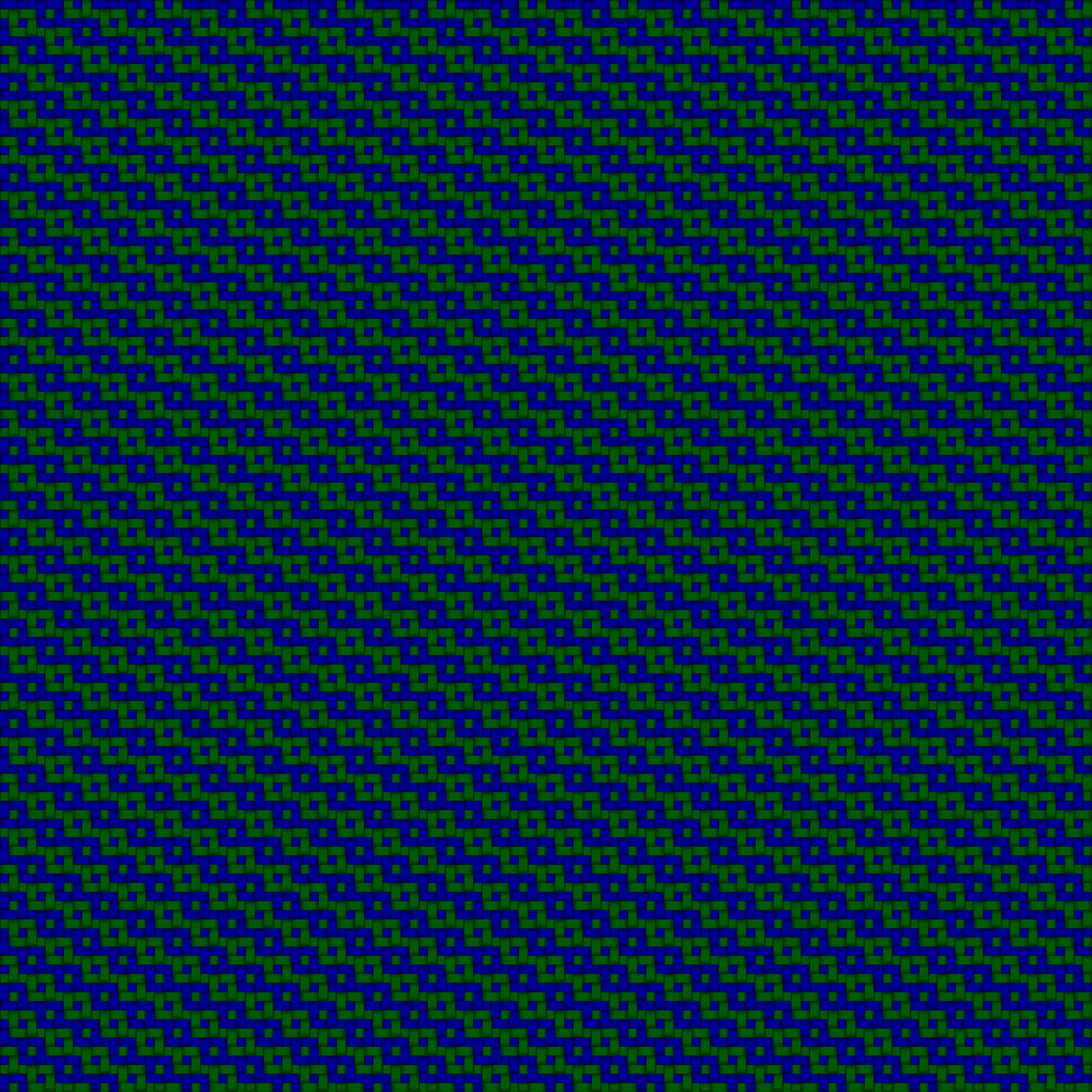 A swatch of blue and green fabric woven in a chain-like pattern.