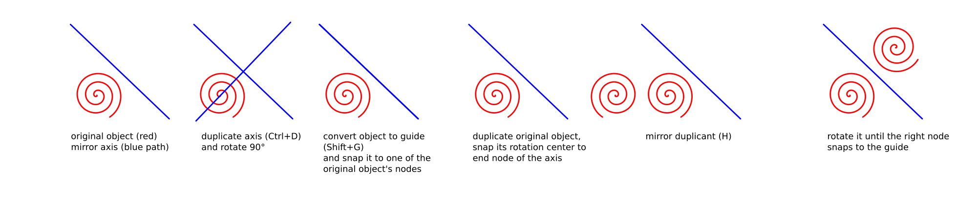 Another possible way of mirroring objects in inkscape on a random axis.