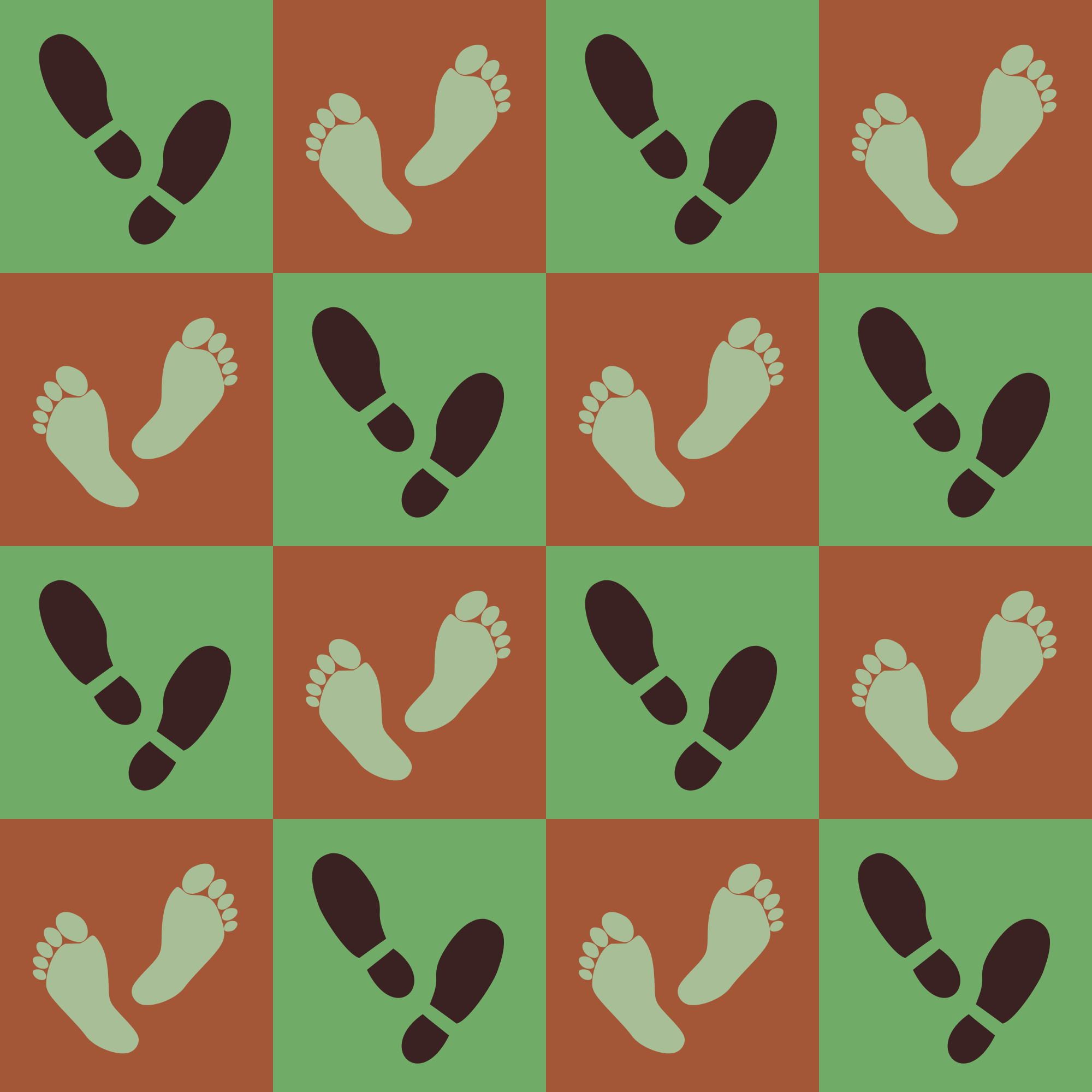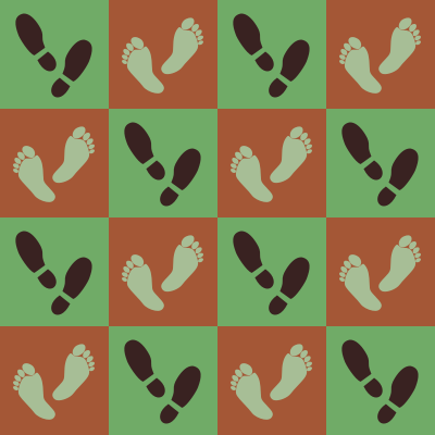 A chequerboard pattern with a foot theme. The shoeprints are from Tavin.