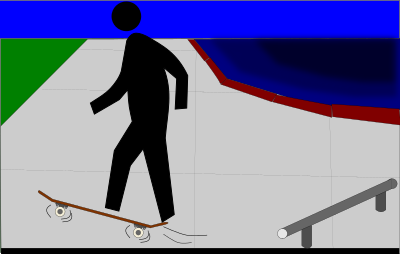 Using the pedestrian figure to illustrate the skateboard trick called the "Ollie", a jump done off a flat surface.