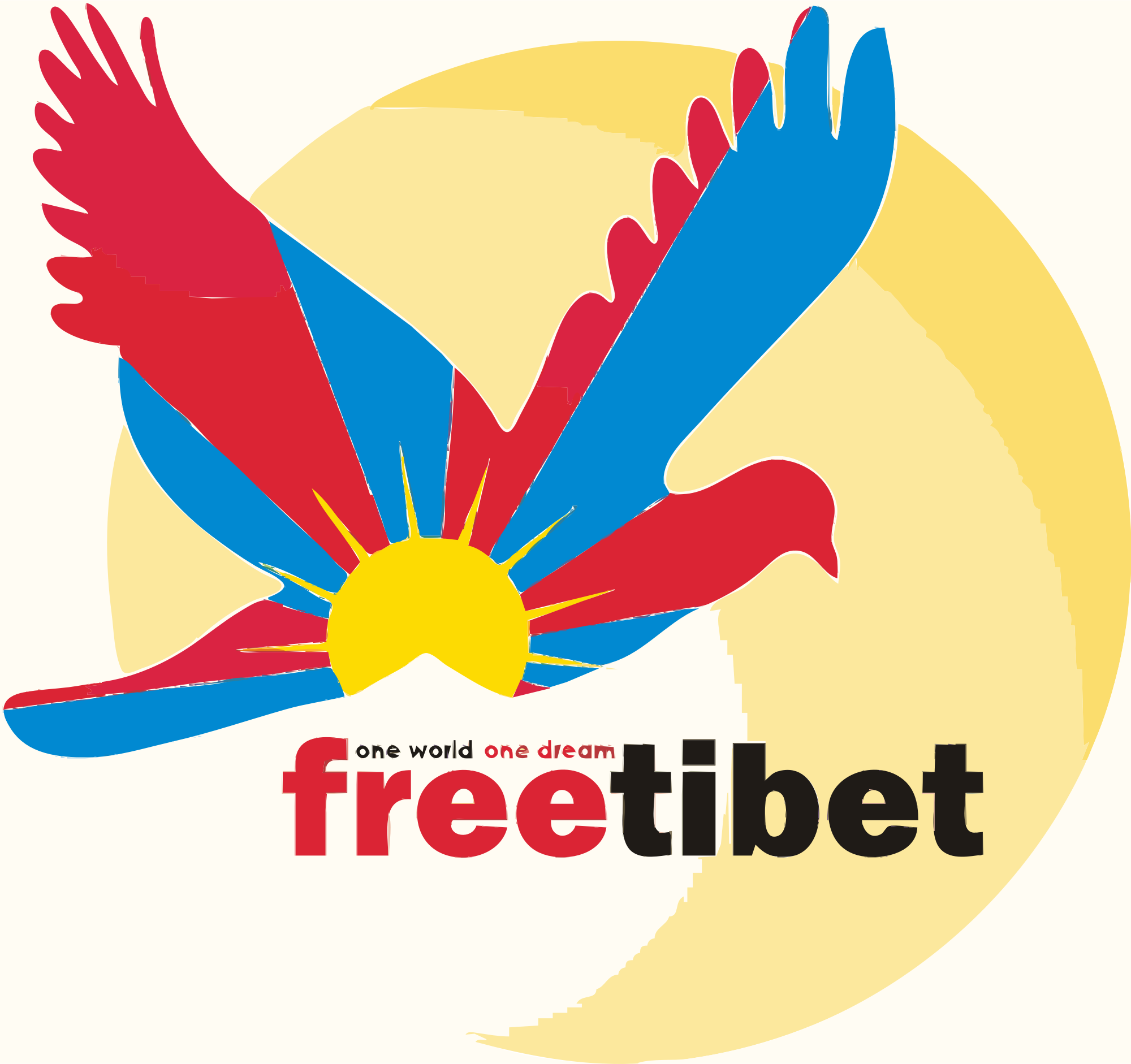 Dove with Tibetan flag. One World - One Dream world dream