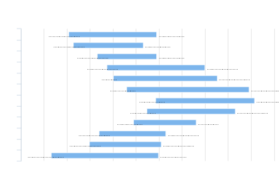 Chart showing the range of temperatures, by month, for Sogo, Norway.