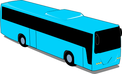 a big blue city bus