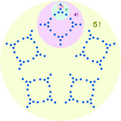 Visual representation of 5! (5 × 4 × 3 × 2 × 1 = 120)