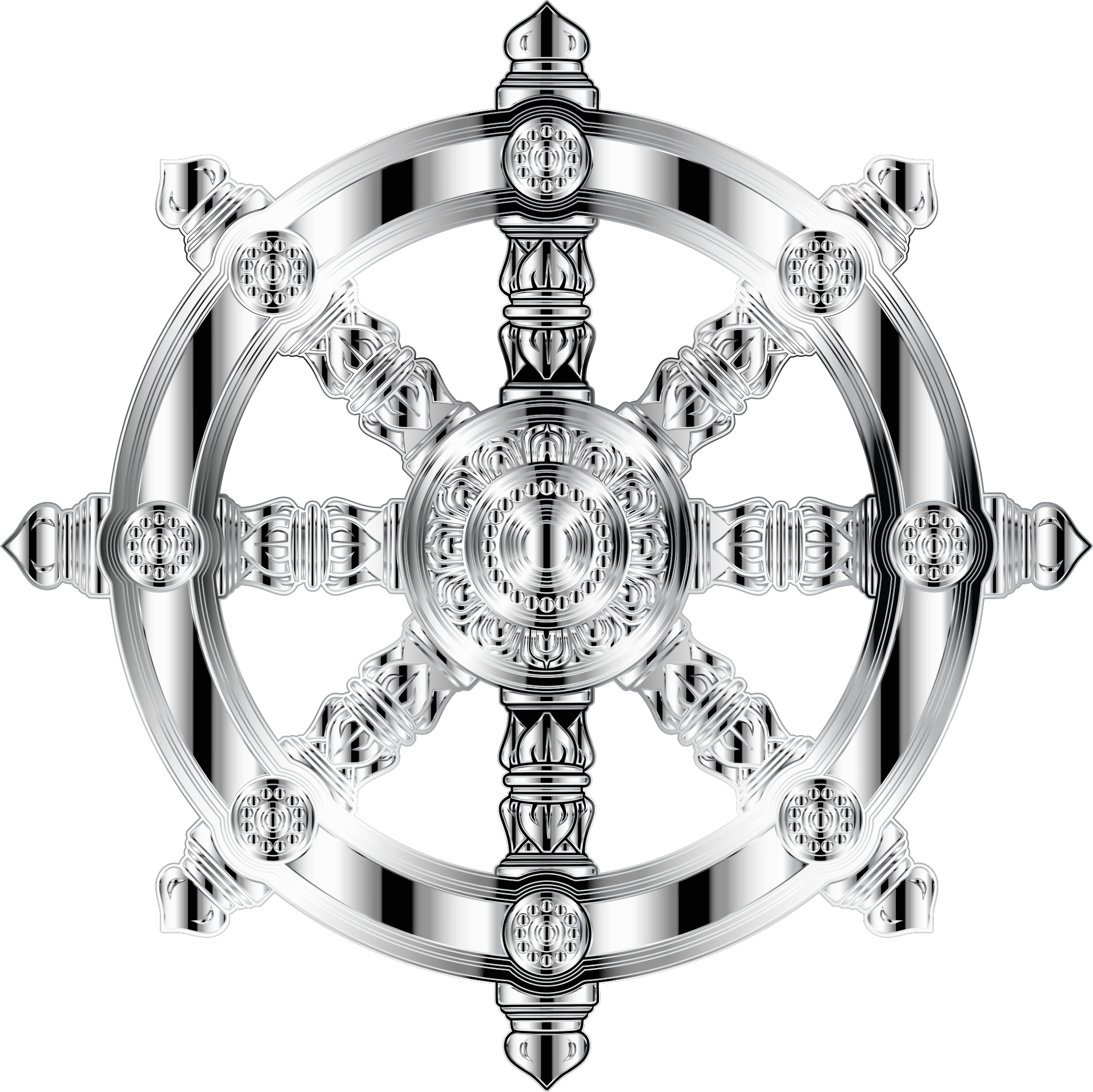 Mirrored Chrome Ornate Dharma Wheel 2