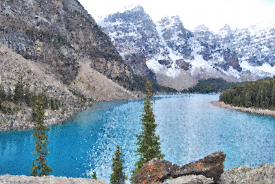 High Poly Banff Lake Canada derived from an image on Pixabay.
