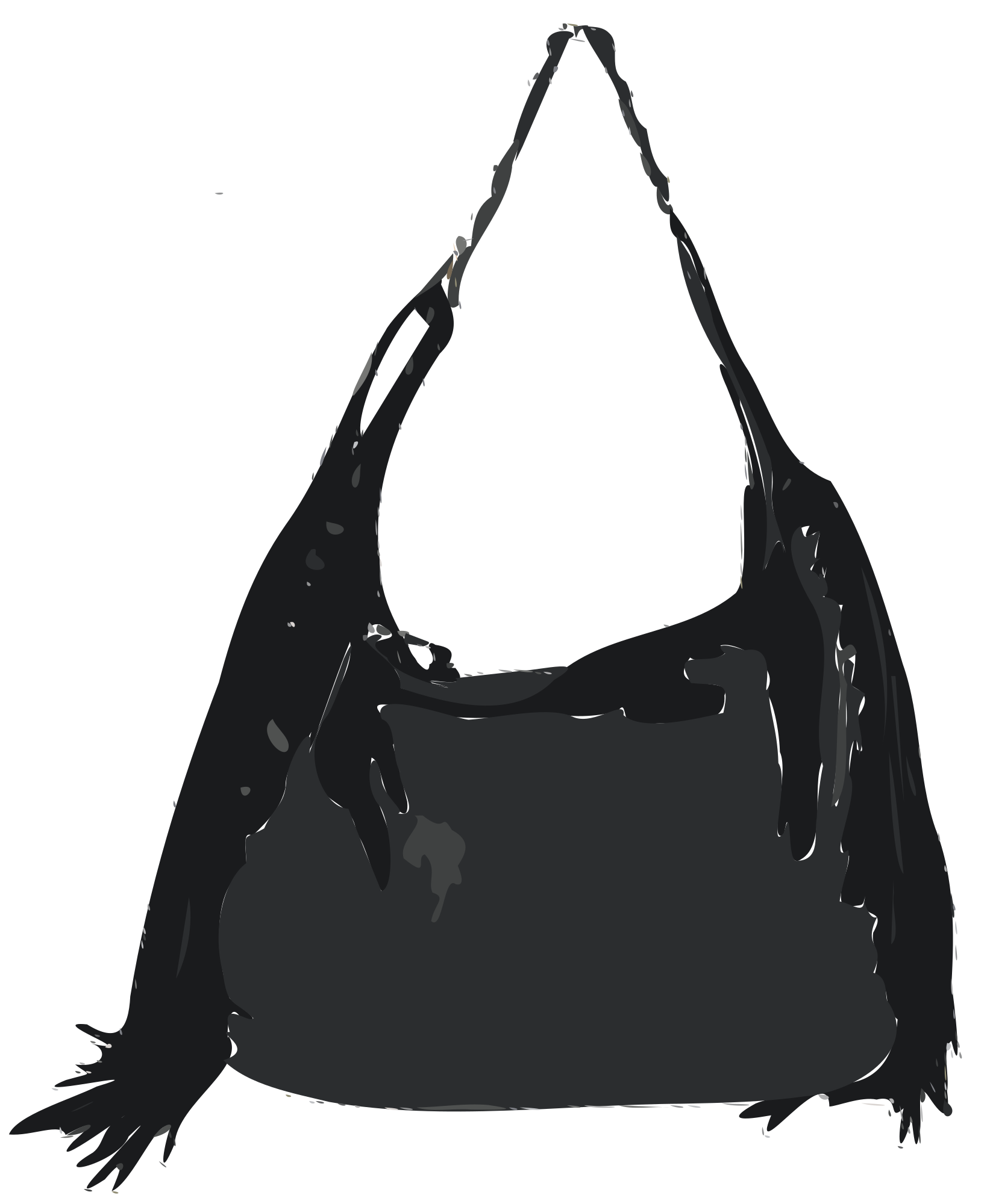 A black leather handbag without a logo.