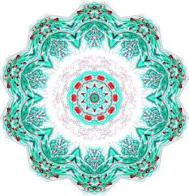A design with approximate rotational symmetry formed from a drawing of hydrozoa by Ernst Haeckel. The design was drawn as a PNG in Paint.net by repeated rotation of wedges of the drawing around a centre point. It was vectorized in Vector Magic