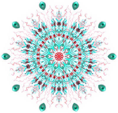 A design with approximate rotational symmetry formed from a drawing of hydrozoa by Ernst Haeckel. The design was drawn as a PNG in Paint.net by repeated rotation of wedges of the drawing around a centre point. It was vectorized in Vector Magic