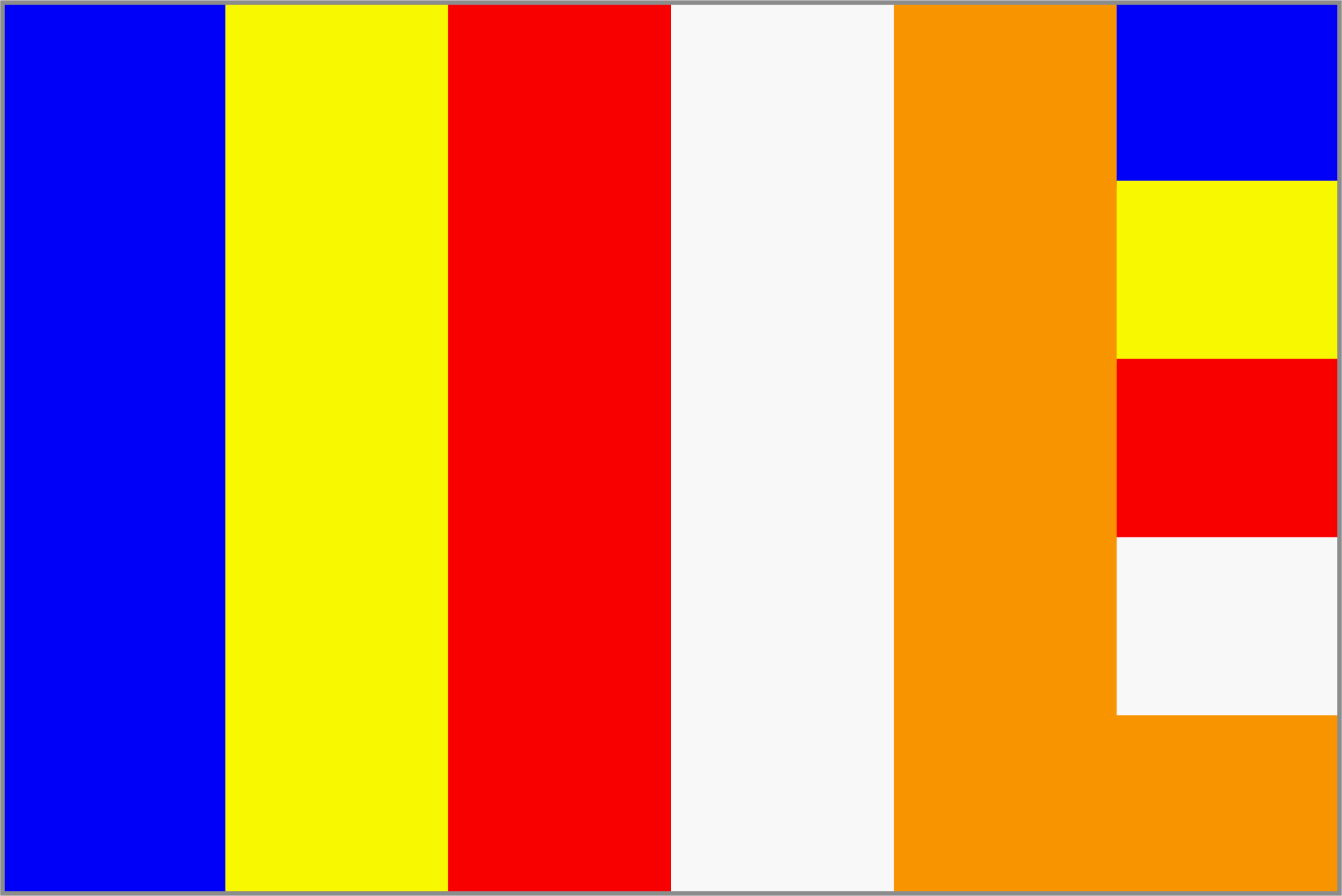 The Buddhist flag. First hoisted in public on Vesak, 28 April 1885. Not to be confused with the Rainbow flag, which came much later.