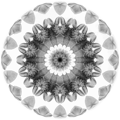 A design with approximate rotational symmetry formed from a drawing of bats by Ernst Haeckel. The design was drawn as a PNG in Paint.net by repeated rotation of wedges of the drawing around a centre point. It was vectorized in Vector Magic