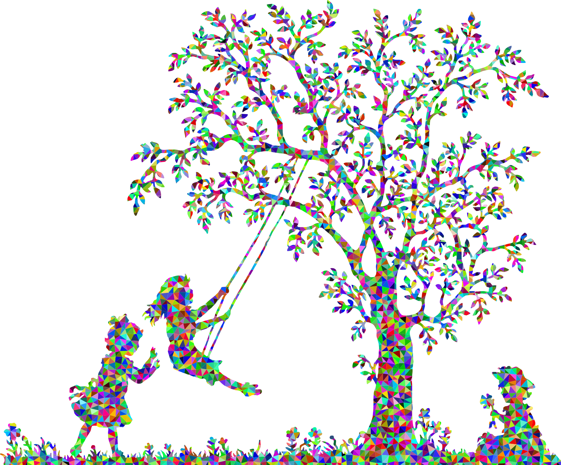 - 3 Art Children Chromatic Colorful Female Flowers Geometric Girls Kids Low Poly Plant Playing Polygon Prismatic Rainbow Swing Three Tree Triangles Vegetation Vintage remix+244109